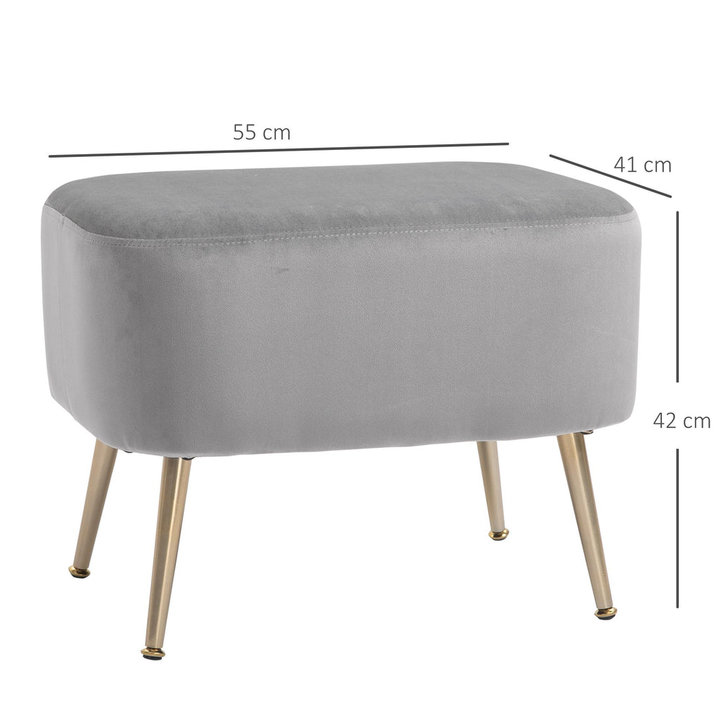 Pouf repose-pieds en tissu velours 55x41x42 cm gris clair
