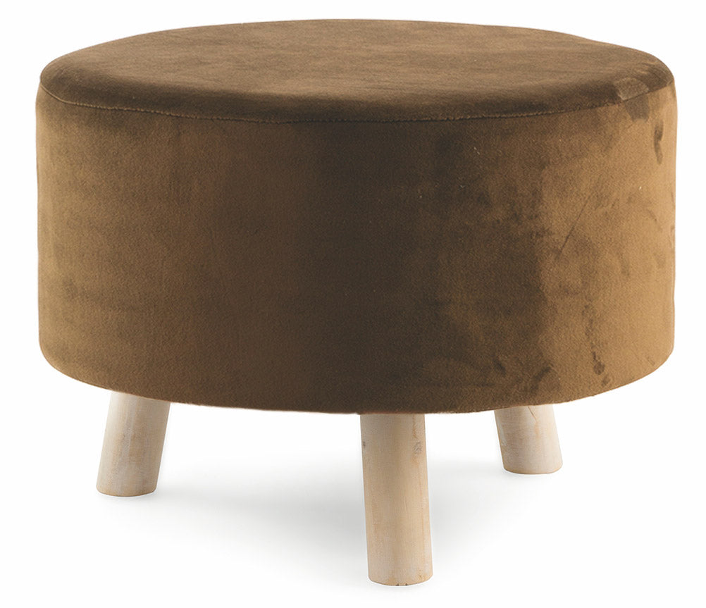 Pouf Repose-Pieds Tabouret Rond Ø50 cm en Velours Soriani Marron