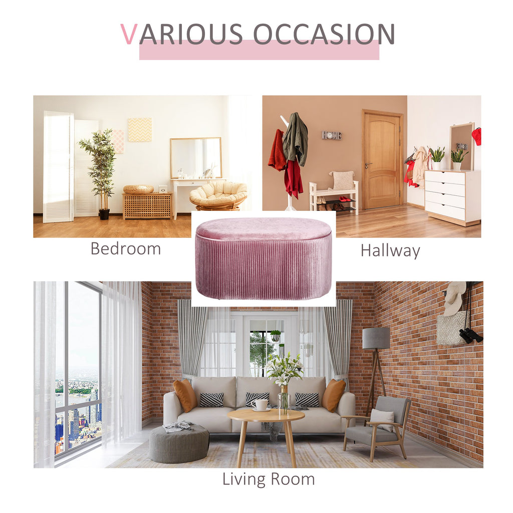 Pouf Tabouret de Rangement 81x40x41 cm en Tissu Velours Rose