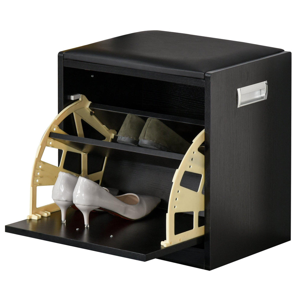 Pouf étagère à chaussures tabouret 43x30x44,5 cm en aggloméré noir