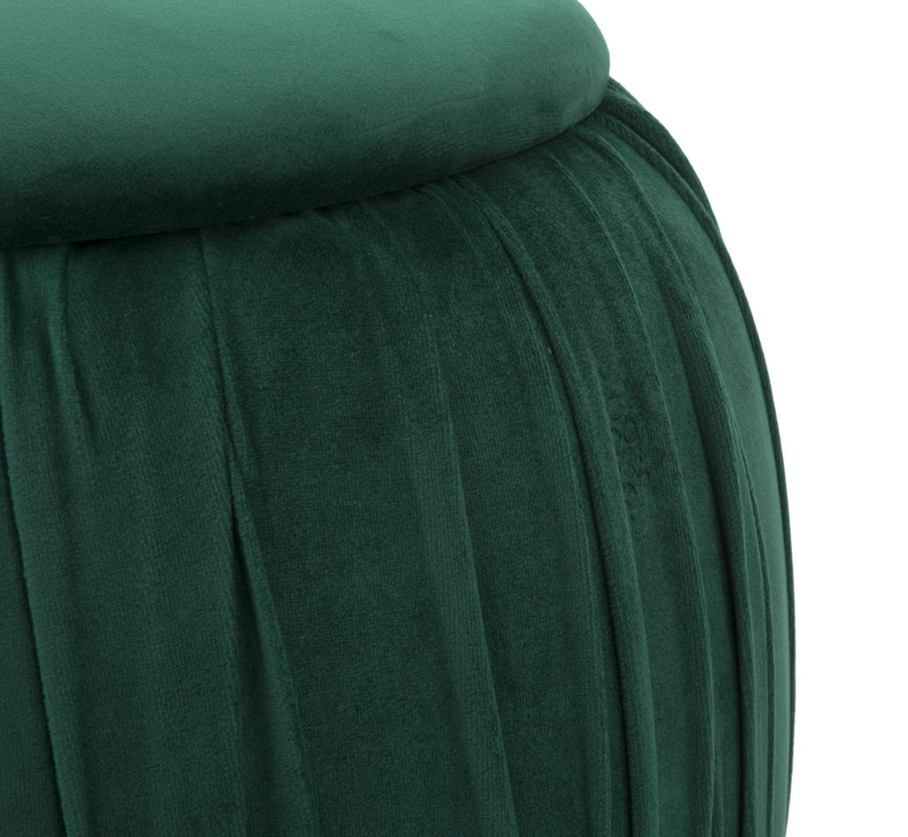 Boite Puff Paris Vert Ø41x41 cm Bois Eponge et Velours Synthétique Vert et Or