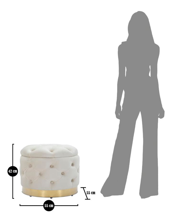 Conteneur Puff Crème Riche Ø55x42 cm en Bois Éponge Crème et Or, Polyester et Acier
