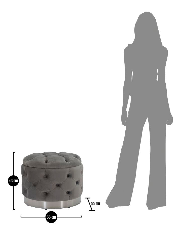 Puff Container Rich Grey Ø55x42 cm en Bois Éponge Polyester et Acier Gris