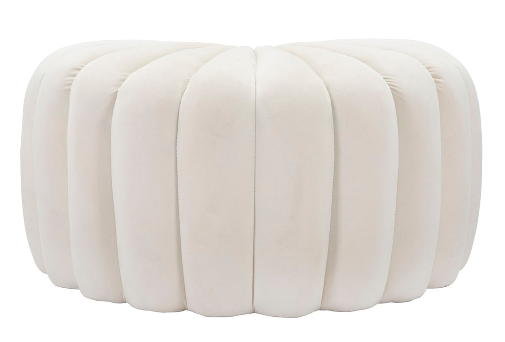 Pouf élégant et original en tissu rembourré de couleur crème. Le design rappelle une coque pour offrir une touche exotique à tout type de meuble.