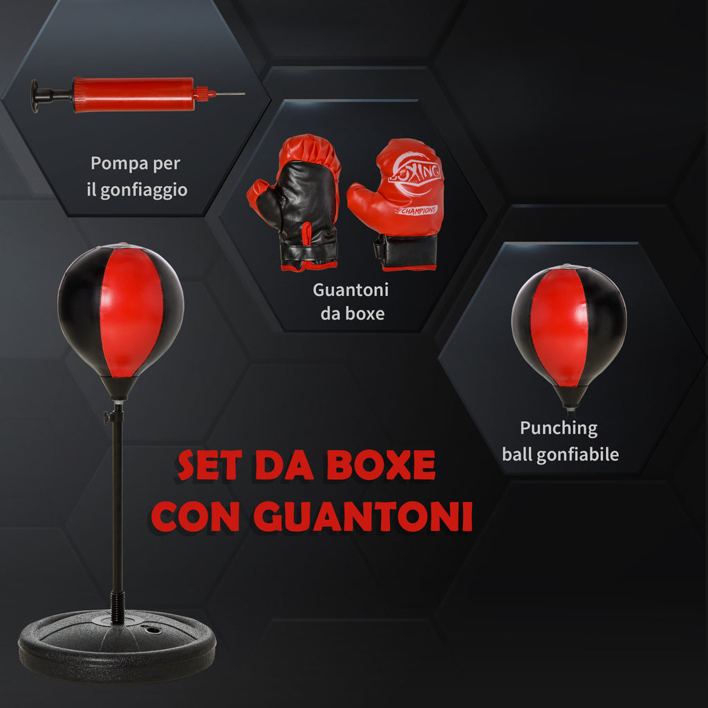Punching Ball pour Enfants avec Gants Hauteur Réglable Rouge et Noir