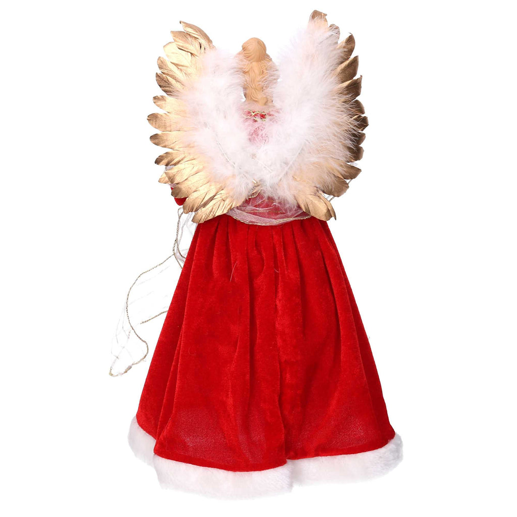 Puntale tessuto angelo con ghirlanda rosso cm Ø26xh40