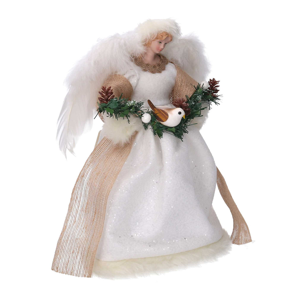 Puntale tessuto angelo con uccellino bianco cm Ø22xh30
