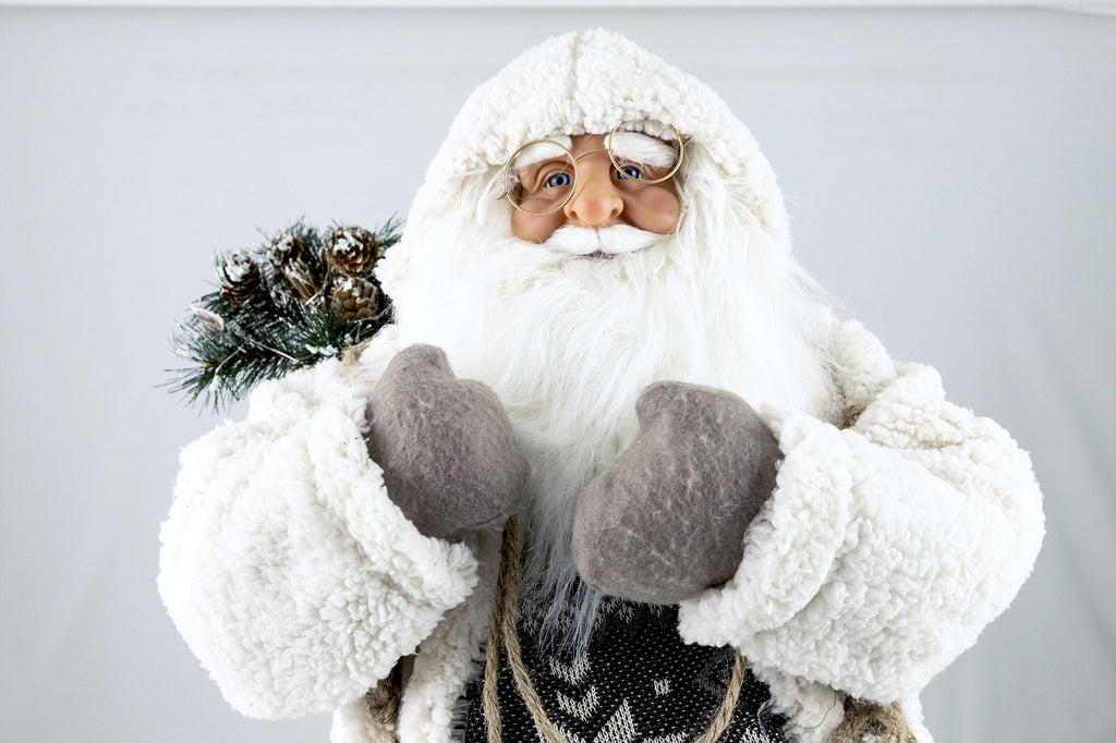 Marionnette Père Noël Lumineuse 12 Led en Tissu H80 cm Soriani Blanc