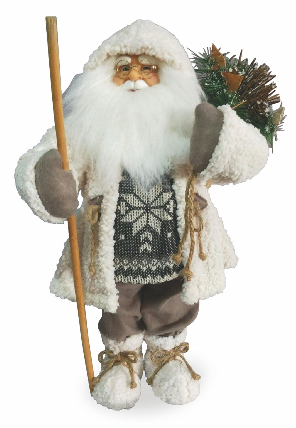Marionnette Lumineuse Père Noël avec Aiguilles de Pin 9 Led en Tissu H62 cm Blanc Soriani