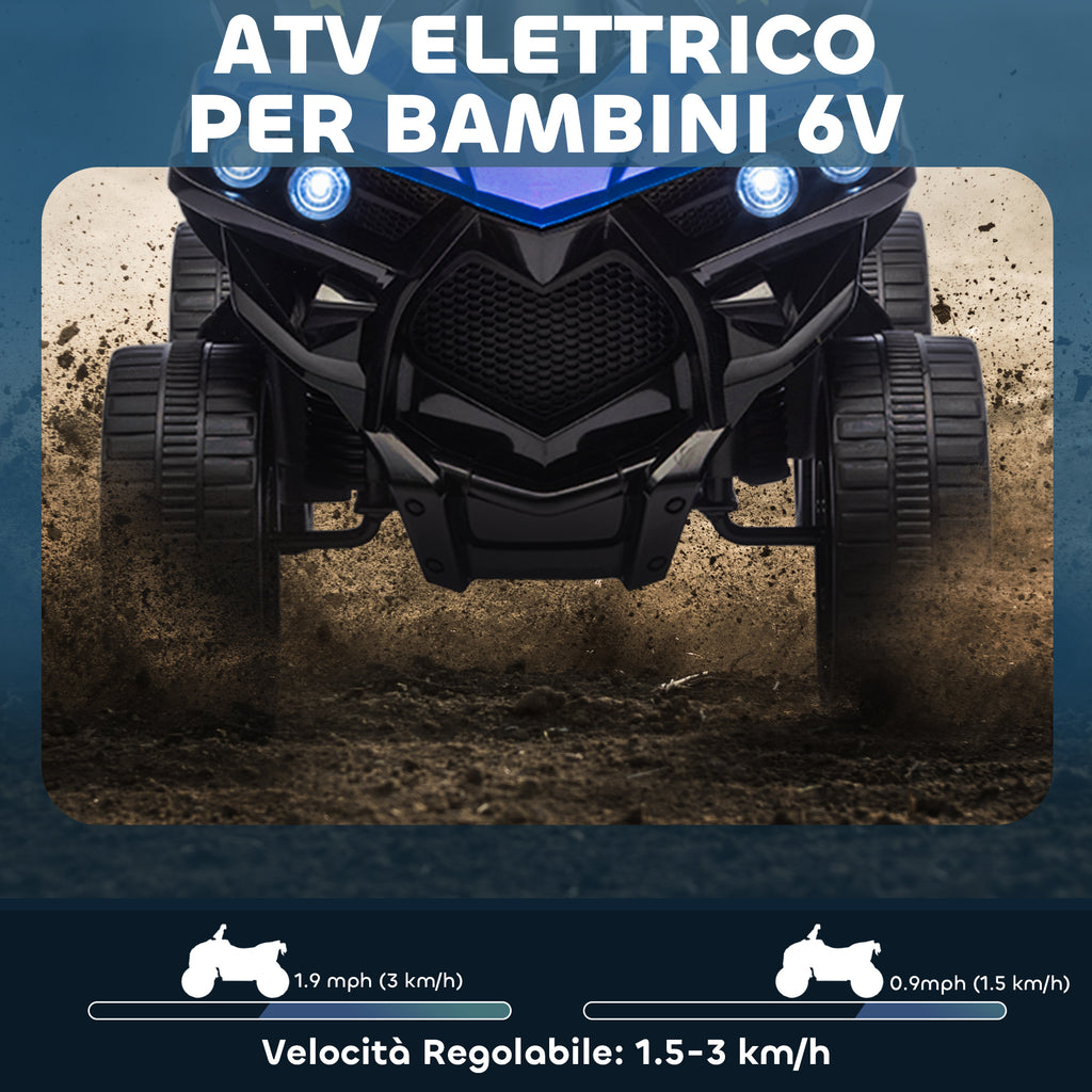 Quad Elettrico per Bambini ATV 6V Ricaricabile con Fari e Musica Blu