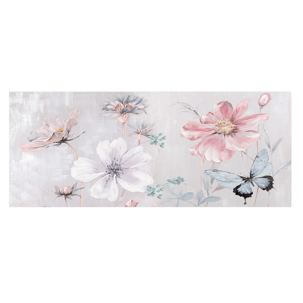 Peinture à l'huile fleurs roses rectangulaires 55x135x3 cm