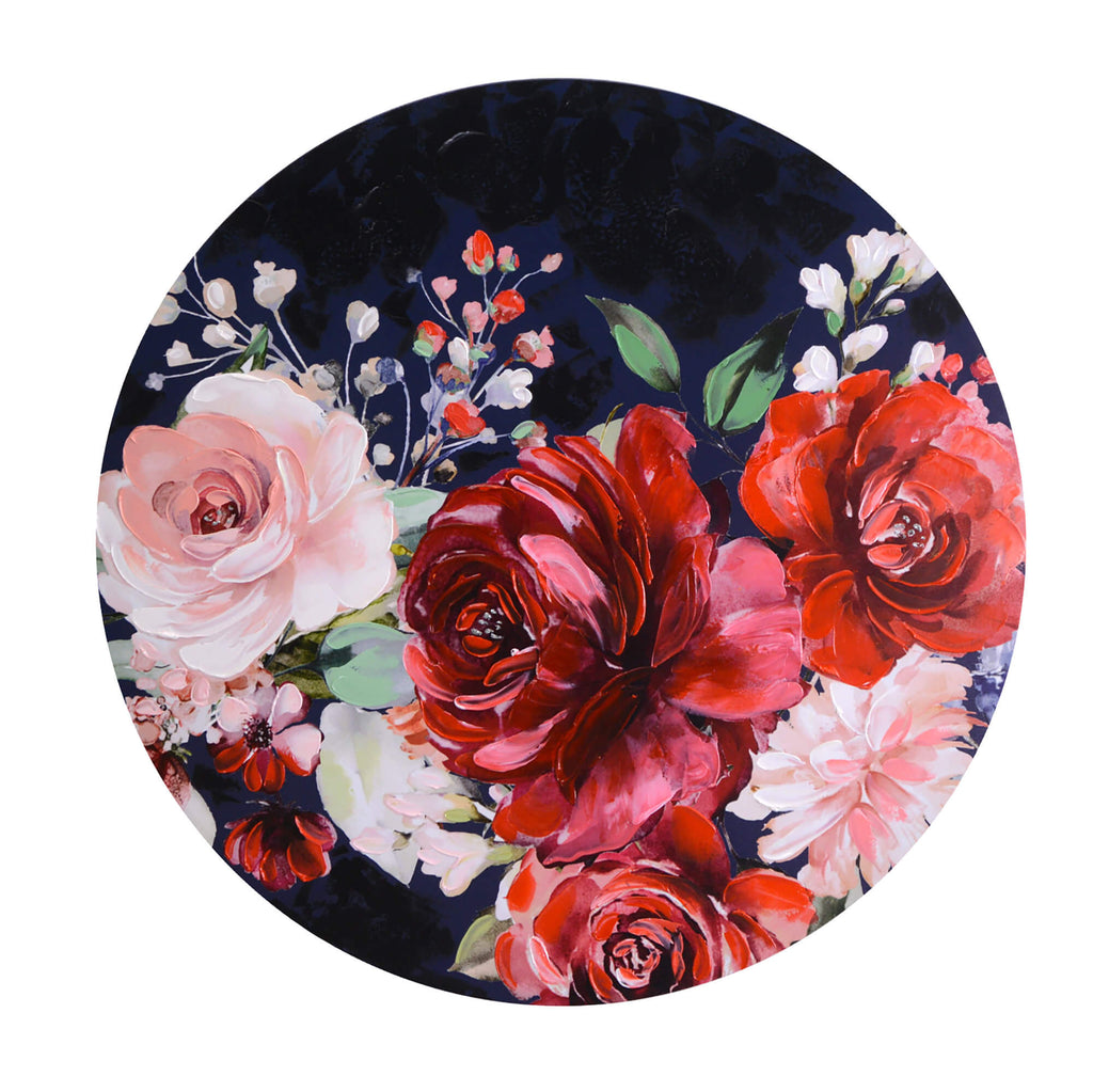 Tableau rond en bois avec fleurs rouges cm ø80xh2,6