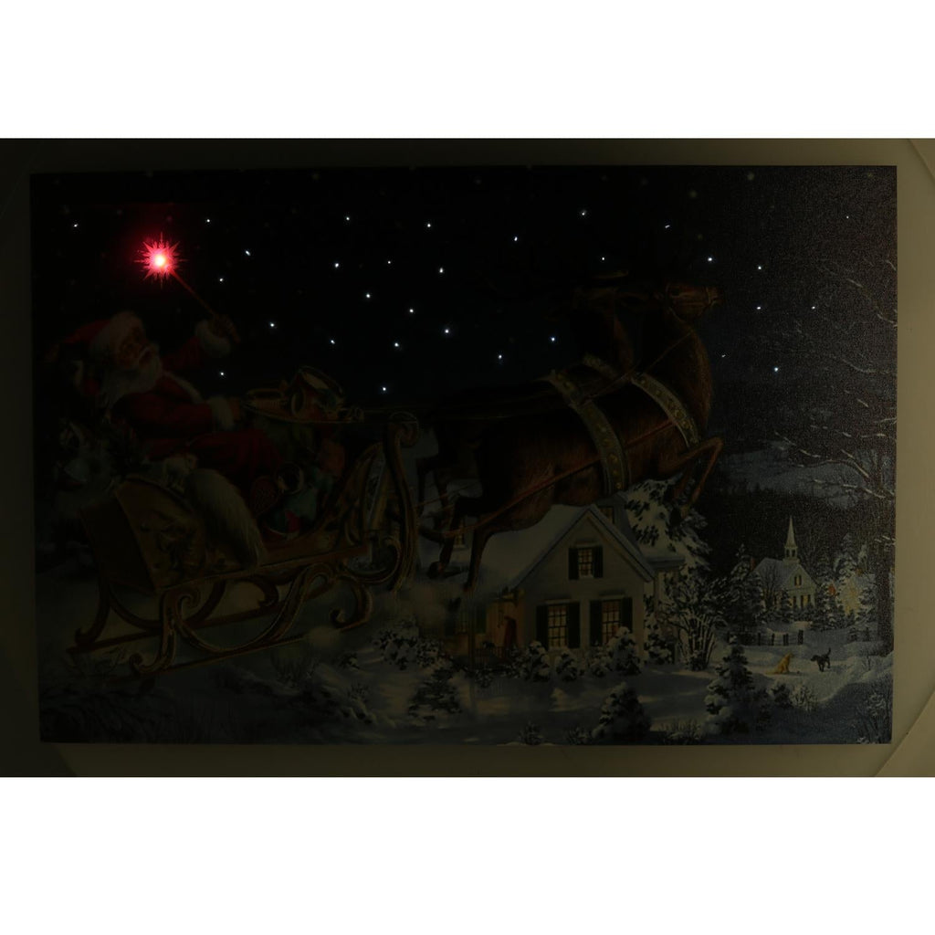 Quadro legno led babbo con renne rettangolare cm 60x40x1,8