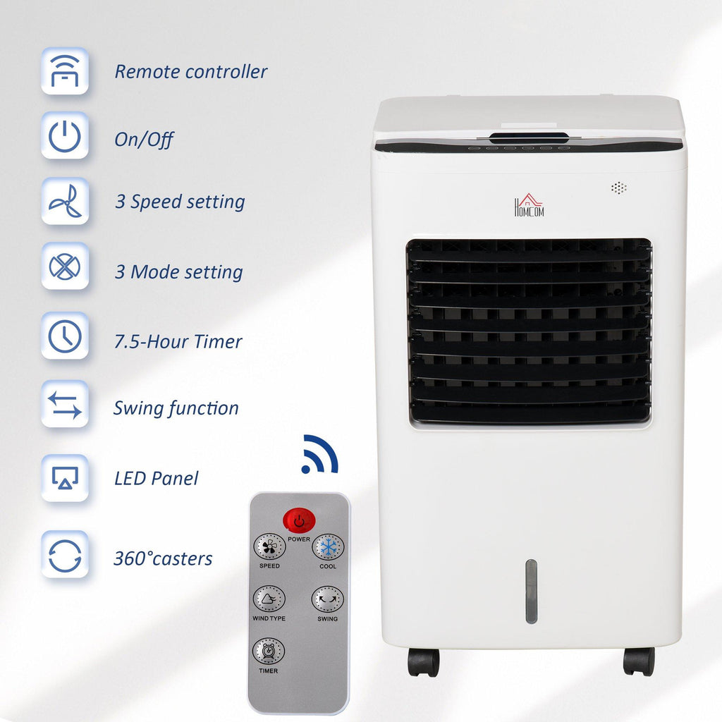 - REFROIDISSEUR ET HUMIDIFICATEUR : Le refroidisseur par évaporation dispose d'un système de ventilation et d'humidification de l'air qui apporte une brise agréable dans votre maison. Il dispose de 4 bacs à glaçons, qui aident à combattre la chaleur pendant les jours d'été. Convient aux pièces d'une superficie de 20m².