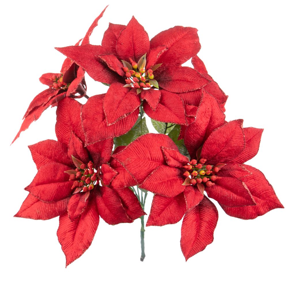 Branche de poinsettia artificielle avec paillettes en synthétique rouge