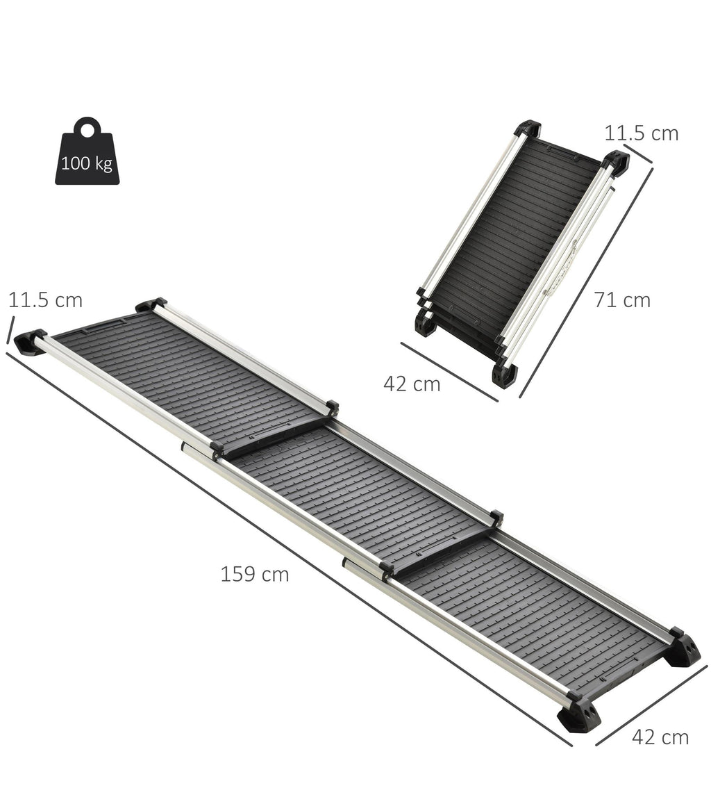 Rampe de Voiture Antidérapante Pliable pour Chien jusqu'à 100 Kg Noir