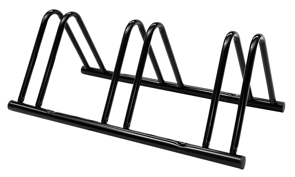 Portabicicletta Rastelliera a 3 posti, realizzato in acciaio verniciato con polvere colore nero. Dotata di fori per il fissaggio al suolo.