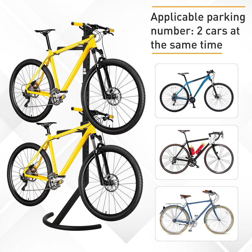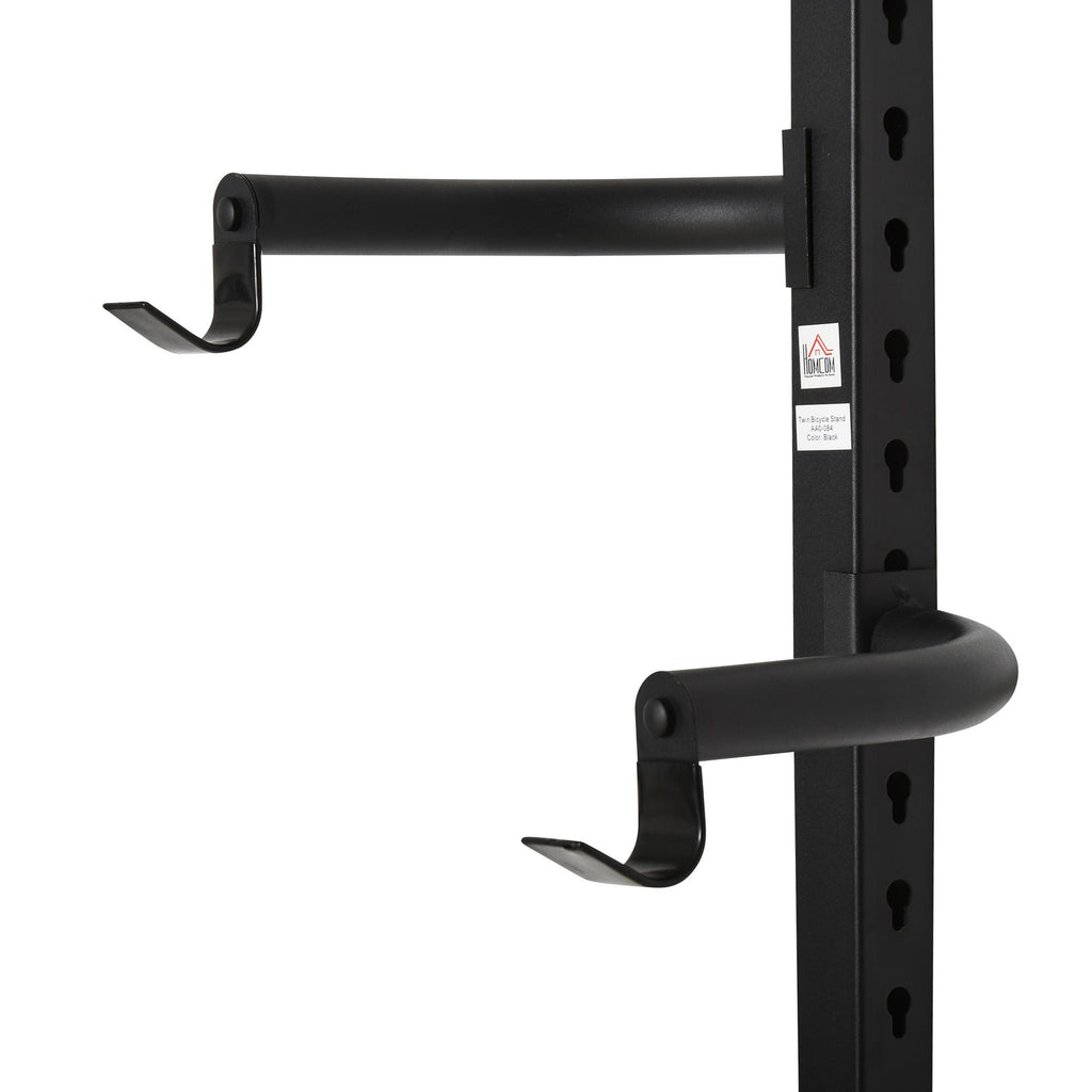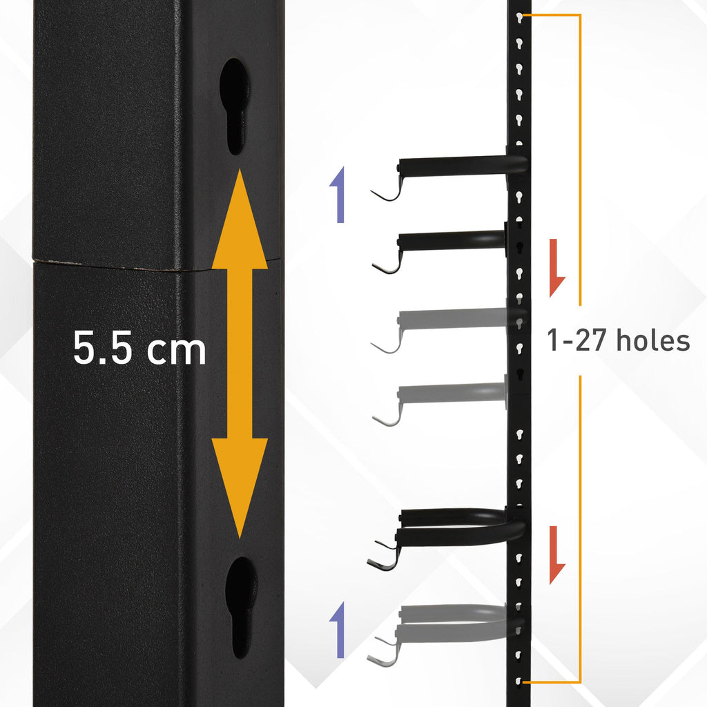 Vous ne savez jamais où garer votre vélo ? Avec ce chevalet vous disposez de 2 stations pour vous et votre famille ! Fabriqué en acier avec une finition noire et antirouille. Equipé de 27 trous, vous pouvez ajuster les crochets pour s'adapter aux vélos. Installez ce porte-vélos dans votre cour, garage ou jardin et donnez une nouvelle maison à vos vélos !
