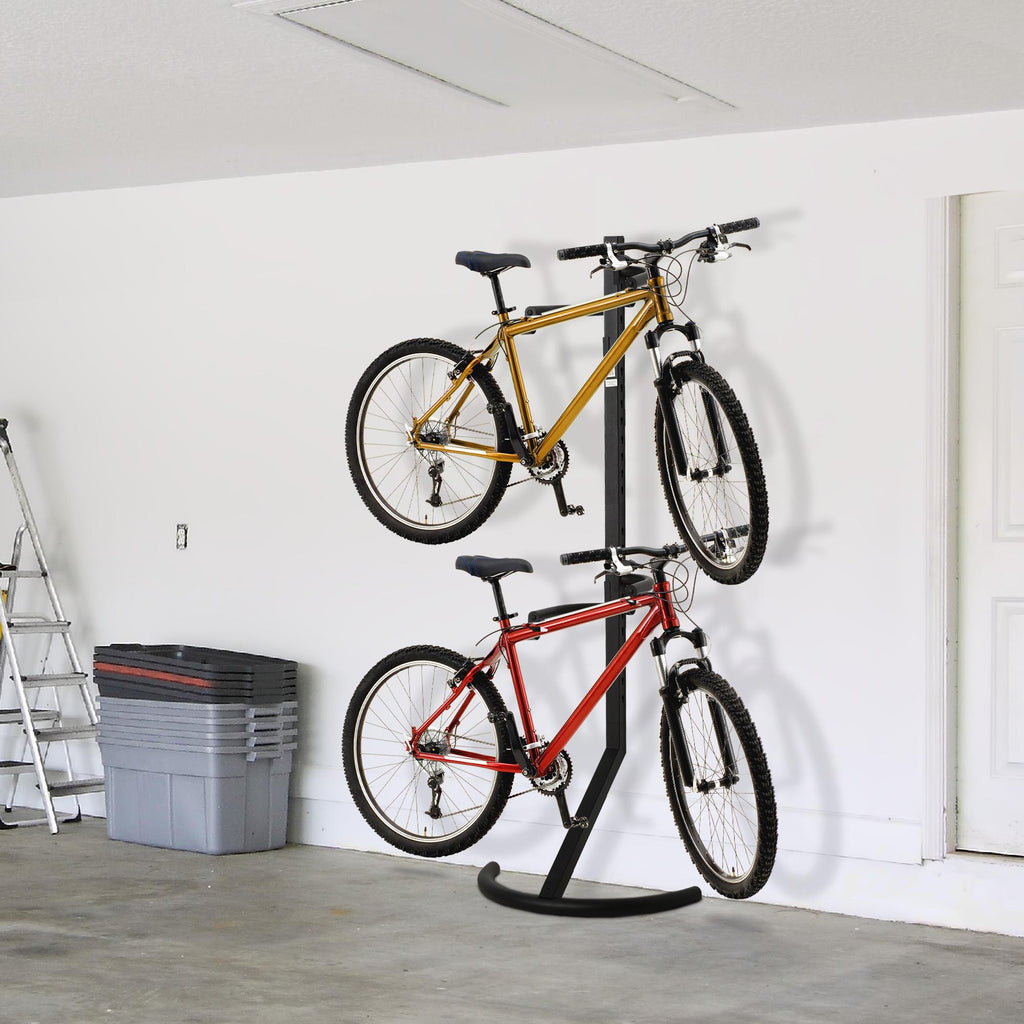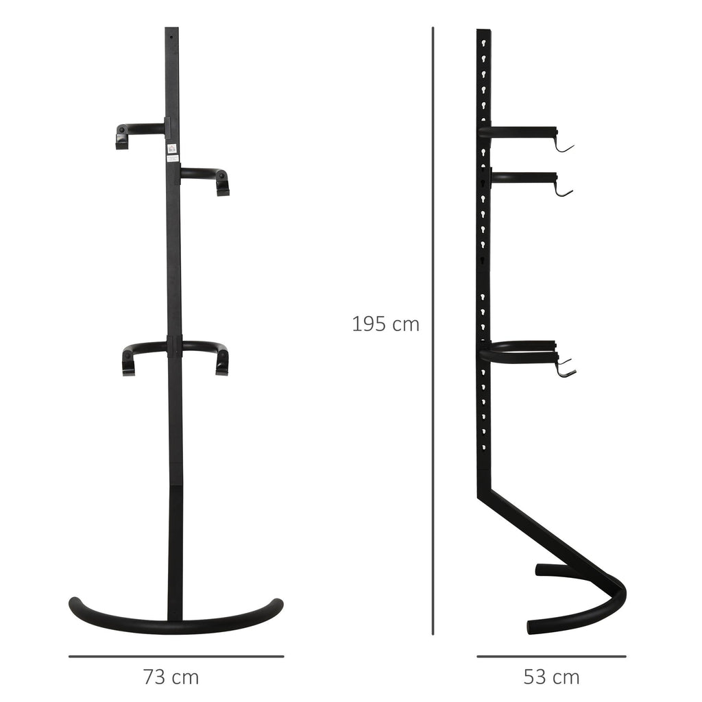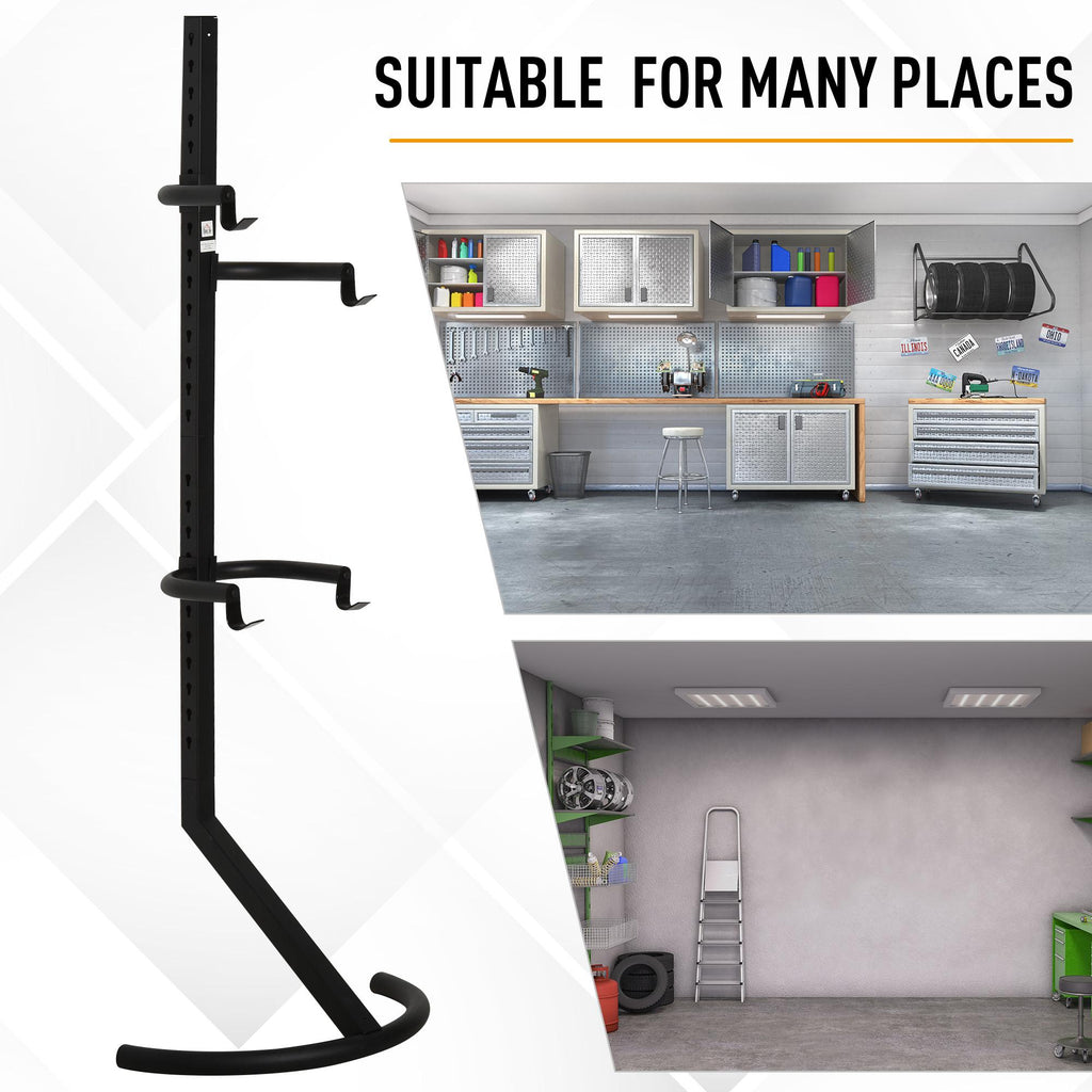 Vous ne savez jamais où garer votre vélo ? Avec ce chevalet vous disposez de 2 stations pour vous et votre famille ! Fabriqué en acier avec une finition noire et antirouille. Equipé de 27 trous, vous pouvez ajuster les crochets pour s'adapter aux vélos. Installez ce porte-vélos dans votre cour, garage ou jardin et donnez une nouvelle maison à vos vélos !