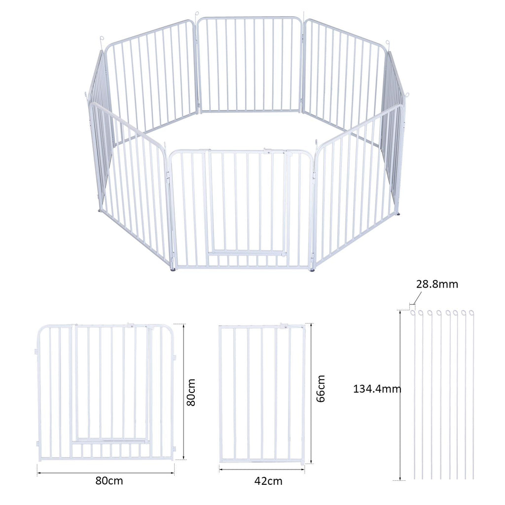 Clôture en Métal pour Animaux de Compagnie pour Extérieur Blanc 8 Éléments 80x80 cm