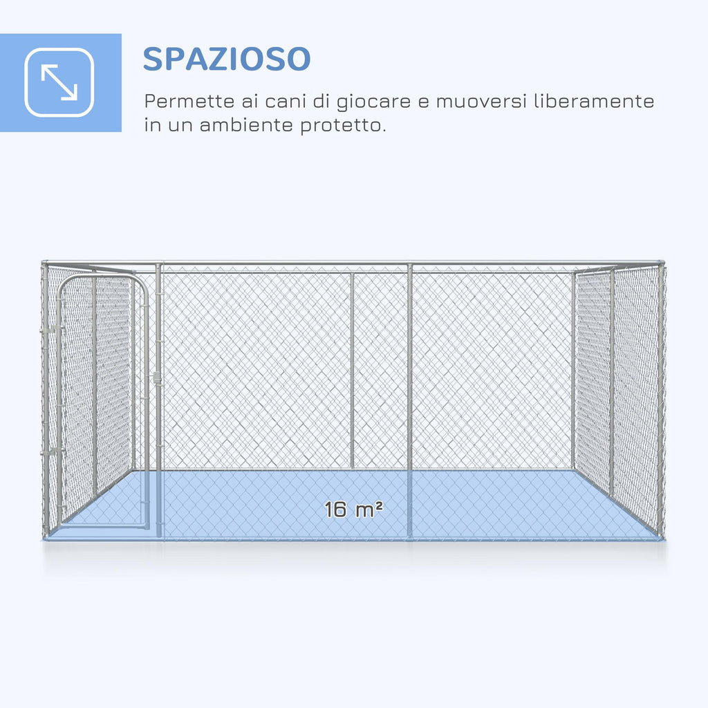 Enclos pour Animaux 400x400x182 cm en Acier Argenté