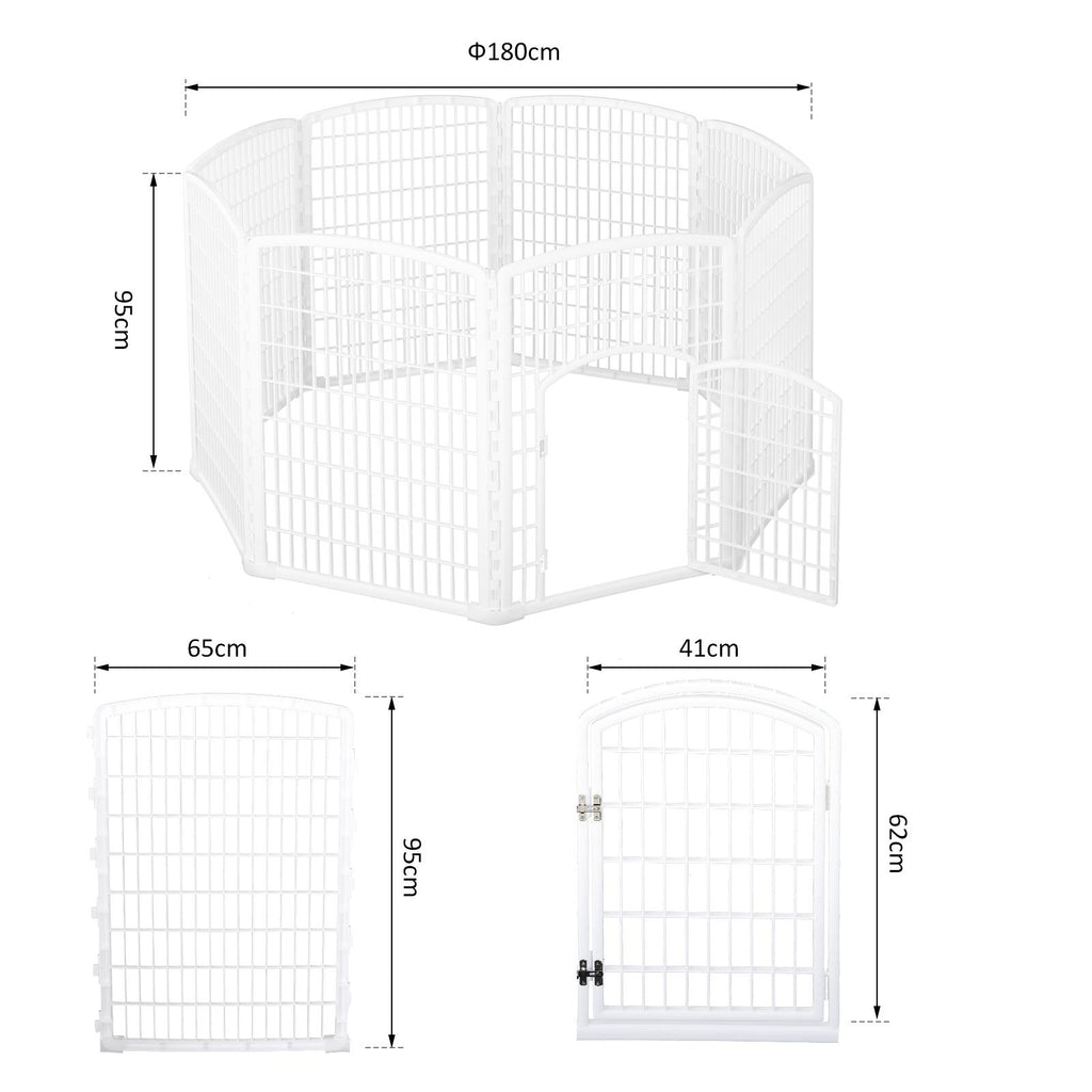 Parc pour Animaux de Compagnie Chiens Chats Lapins Rongeurs 8 Panneaux Diamètre 180cm Hauteur 95cm Parc en Plastique Robuste Zone de Sécurité pour Bouger Jouer Dormir