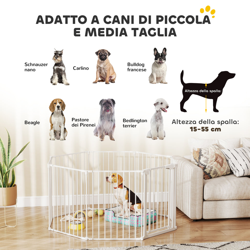 - USO VERSATILE: Gli 8 pannelli di questo recinto per cani può assumere configurazioni a ottagono, quadrato o a L. È anche possibile fissarlo alla parete e usarlo sulle scale o come barriera protettiva per caminetti o separé, a seconda delle esigenze