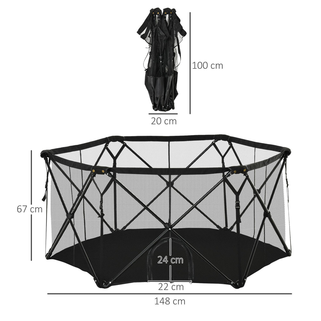 Clôture Pliante Pour Chiens 148x134x67 cm En Acier Et Tissu Noir