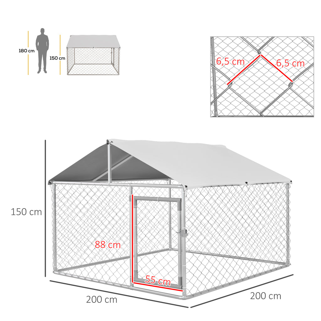 Recinto per Cani Taglia Media da Esterno 200x200x150 cm con Tetto Impermeabile Argento