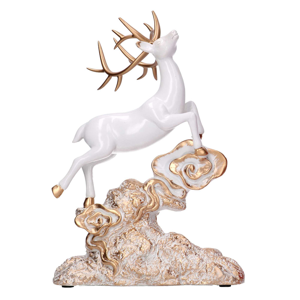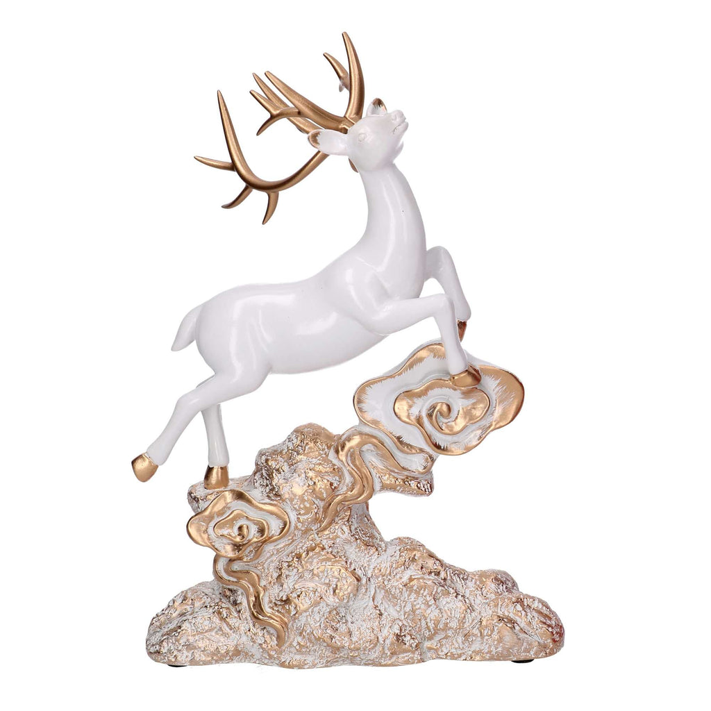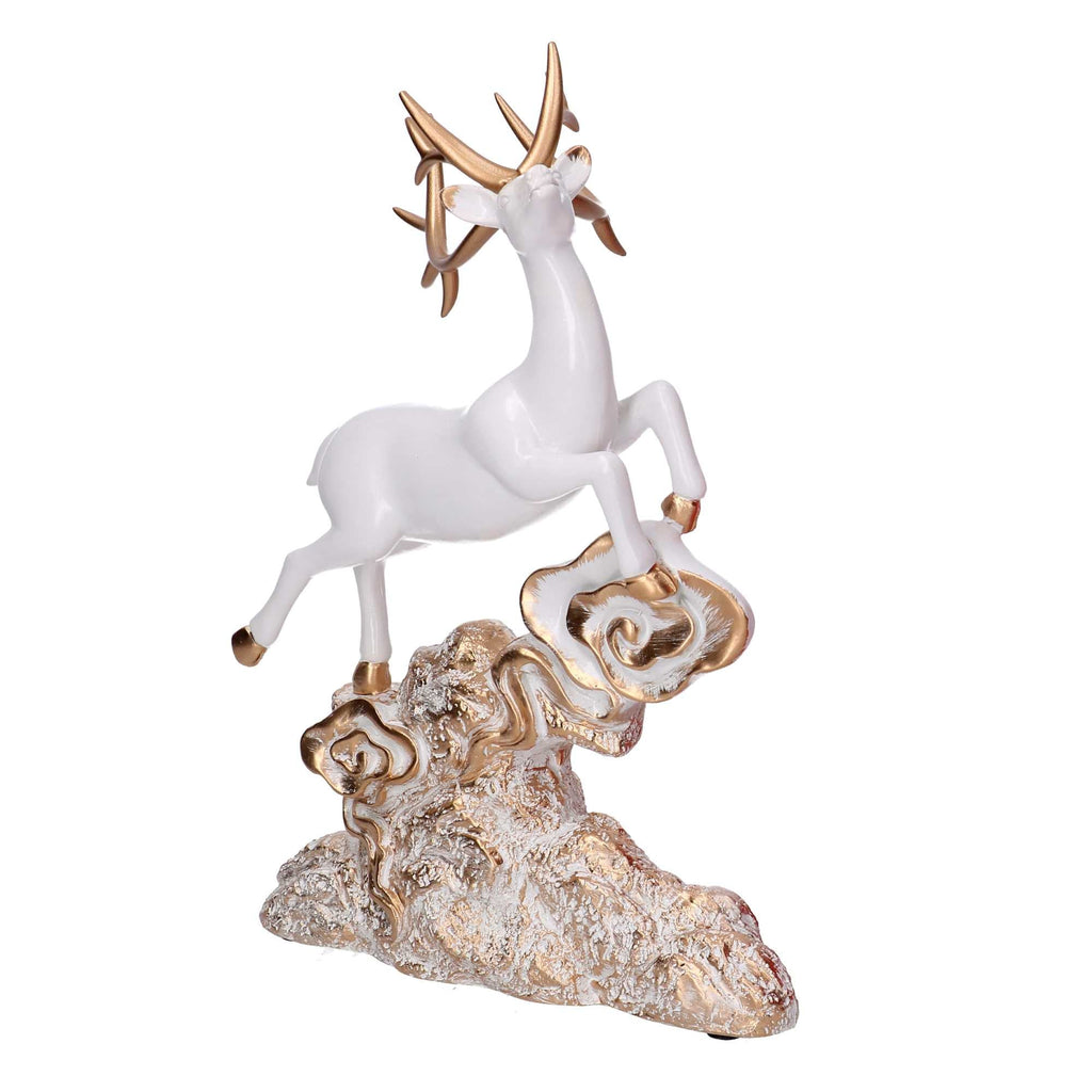 Renna resina su rocce oro e bianco cm 20,5x10xh29
