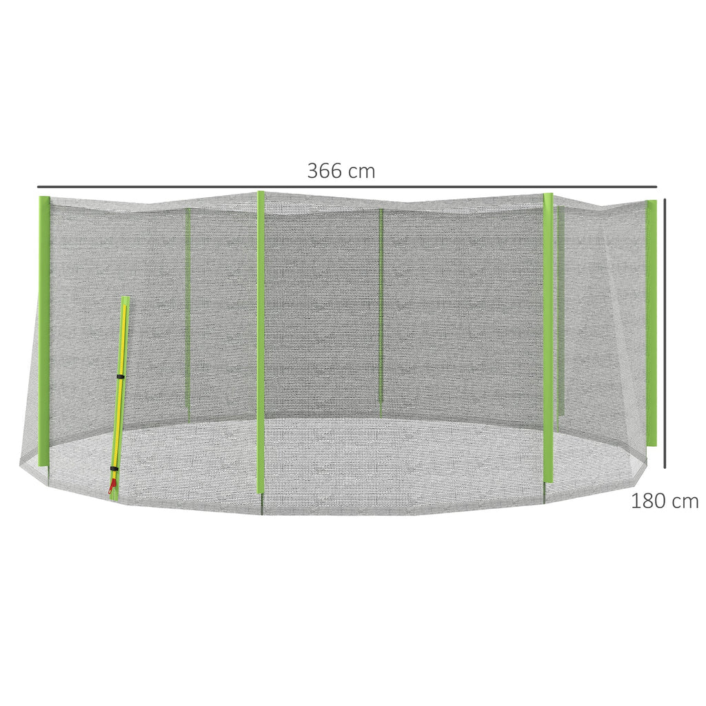 Rete di Protezione per Trampolini a 8 Pali con Ingresso con Cerniera Ø366x180 cm in PE Nero e Verde
