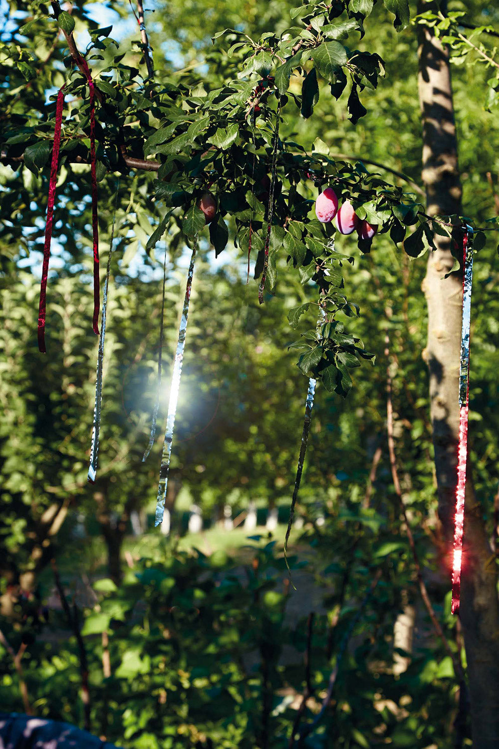 Il est utilisé à proximité de cultures telles que les légumes et les fruits. Les paillettes du ruban des deux côtés, également déplacées par le vent, parviennent à effrayer les moineaux.