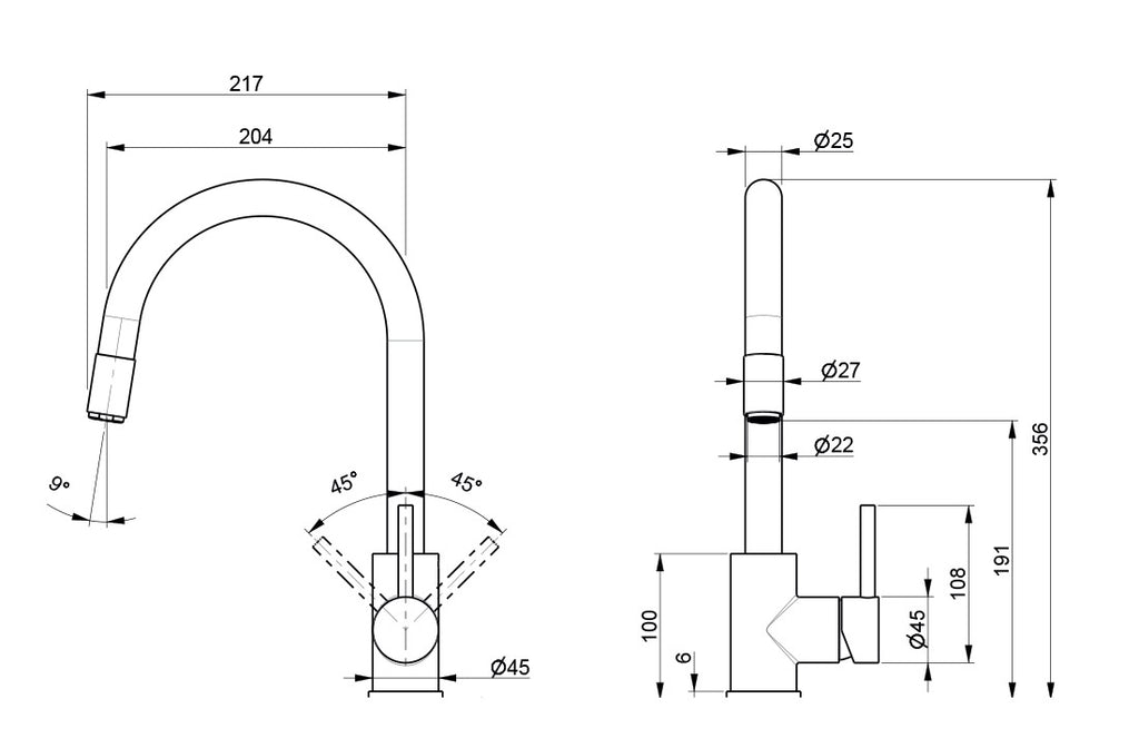 Robinet de cuisine mitigeur d'évier à levier unique bec pivotant rond en acier inoxydable noir