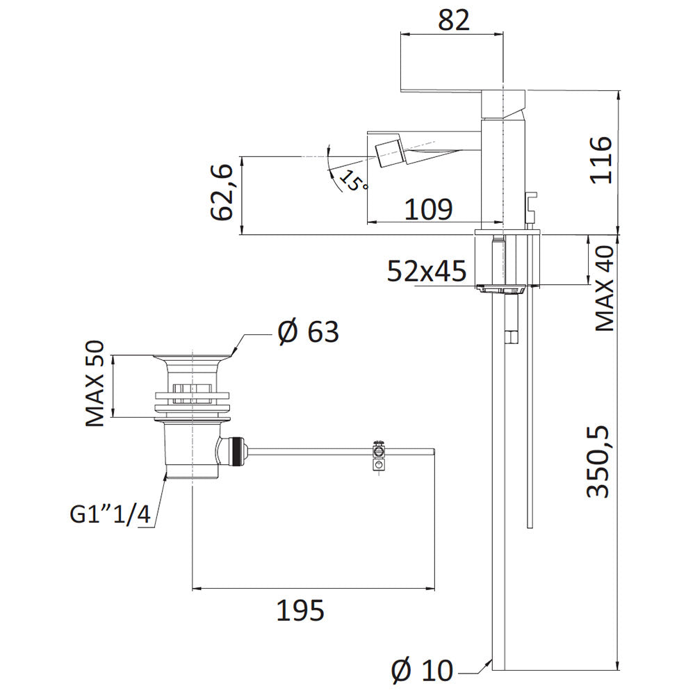 Mariani Polar 493/PA mitigeur bidet monocommande avec vidage . Réglage de la cartouche avec disques céramiques ø 25 mm.