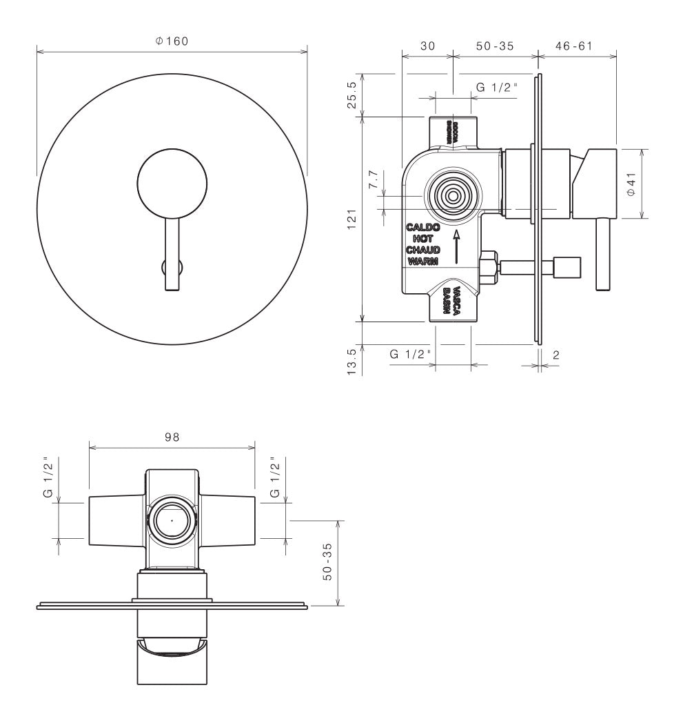 Mitigeur de douche monocommande avec inverseur automatique complet avec corps à encastrer. Comme les rochers, la neige et les steppes. La ligne Colorado s'inspire des couleurs naturelles de cette région à laquelle elle ajoute le style italien incomparable. Convient pour les douches.