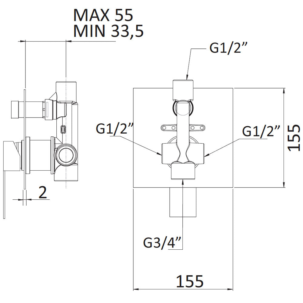 Mitigeur de douche à encastrer Mariani Polar 173/PA . Avec inverseur et cartouche à disque céramique ø 35 mm.