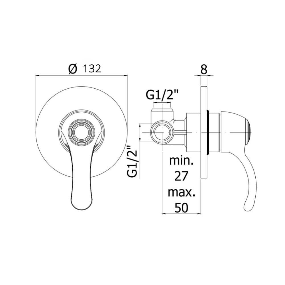 Il miscelatore cromato per doccia incasso a Bologna è realizzato in ottone con una finitura cromata che conferisce un aspetto elegante e moderno. La sua dimensione compatta di altezza 13,2 cm, larghezza 13,2 cm e profondità di soli 8 mm dalla cornice lo rende perfetto per installazioni incassate. Questo miscelatore offre una soluzione pratica e funzionale per il tuo bagno, garantendo una miscelazione precisa dell'acqua e un design senza tempo.