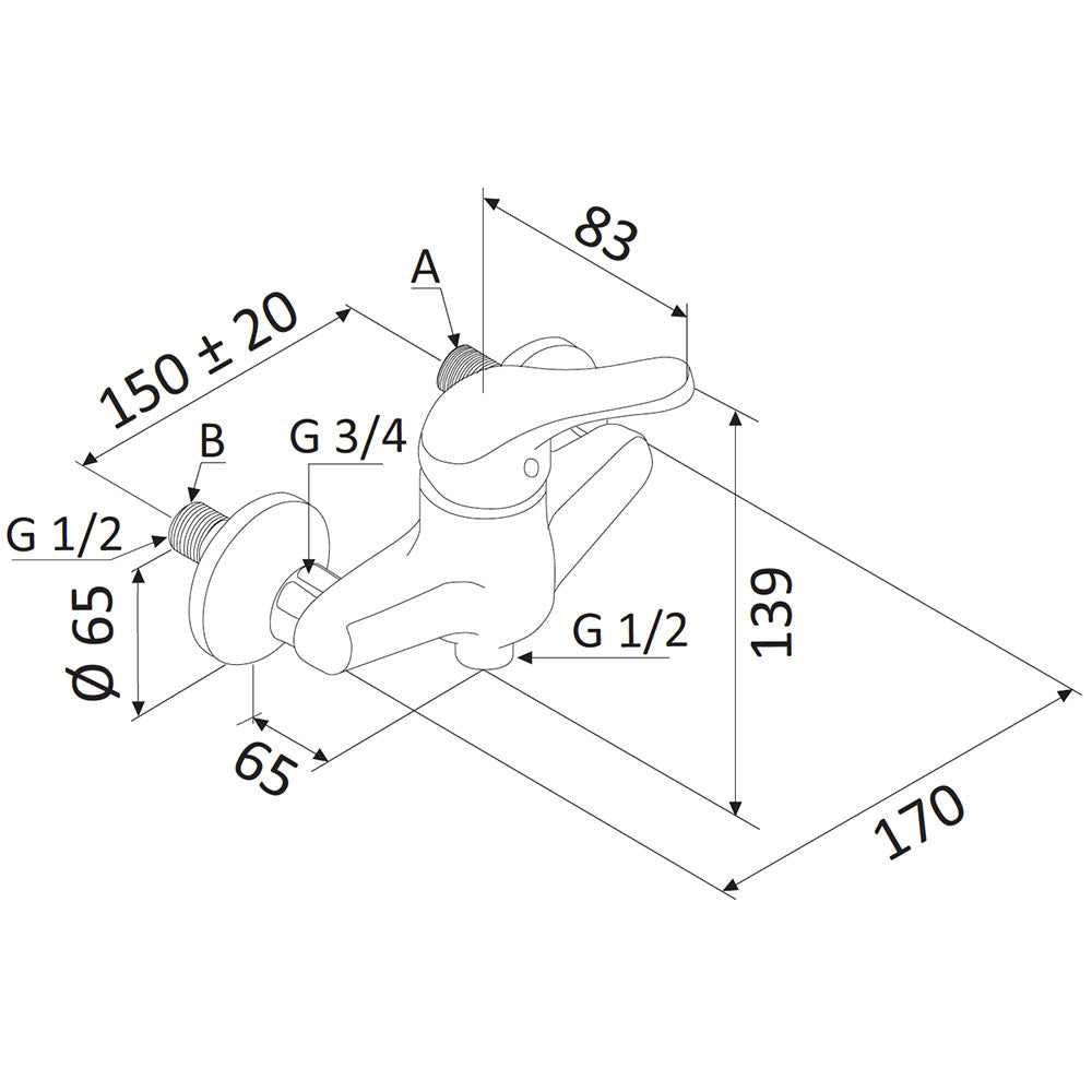 Mitigeur de douche extérieur Mariani Epic 252/E2 . Avec cartouche à disque céramique ø 40 mm.