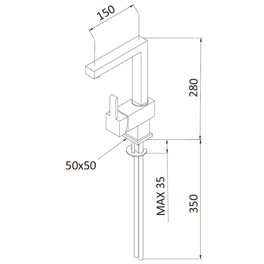 Mitigeur d'évier de cuisine à levier unique avec bec haut pivotant Mariani Quadra 506/QN . Réglage de la cartouche à disque céramique ø 35 mm.