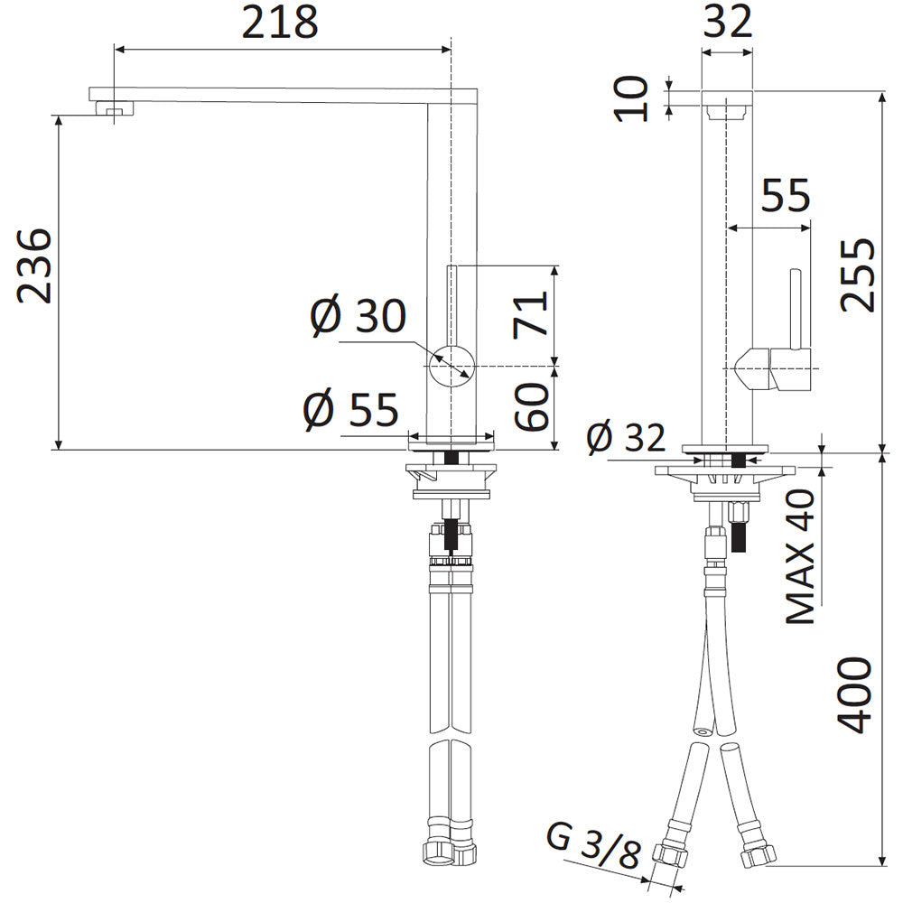 Mariani Soft 570/SO Mitigeur d'évier de cuisine avec bec haut orientable . Réglage de la cartouche avec disques céramiques ø 25 mm.