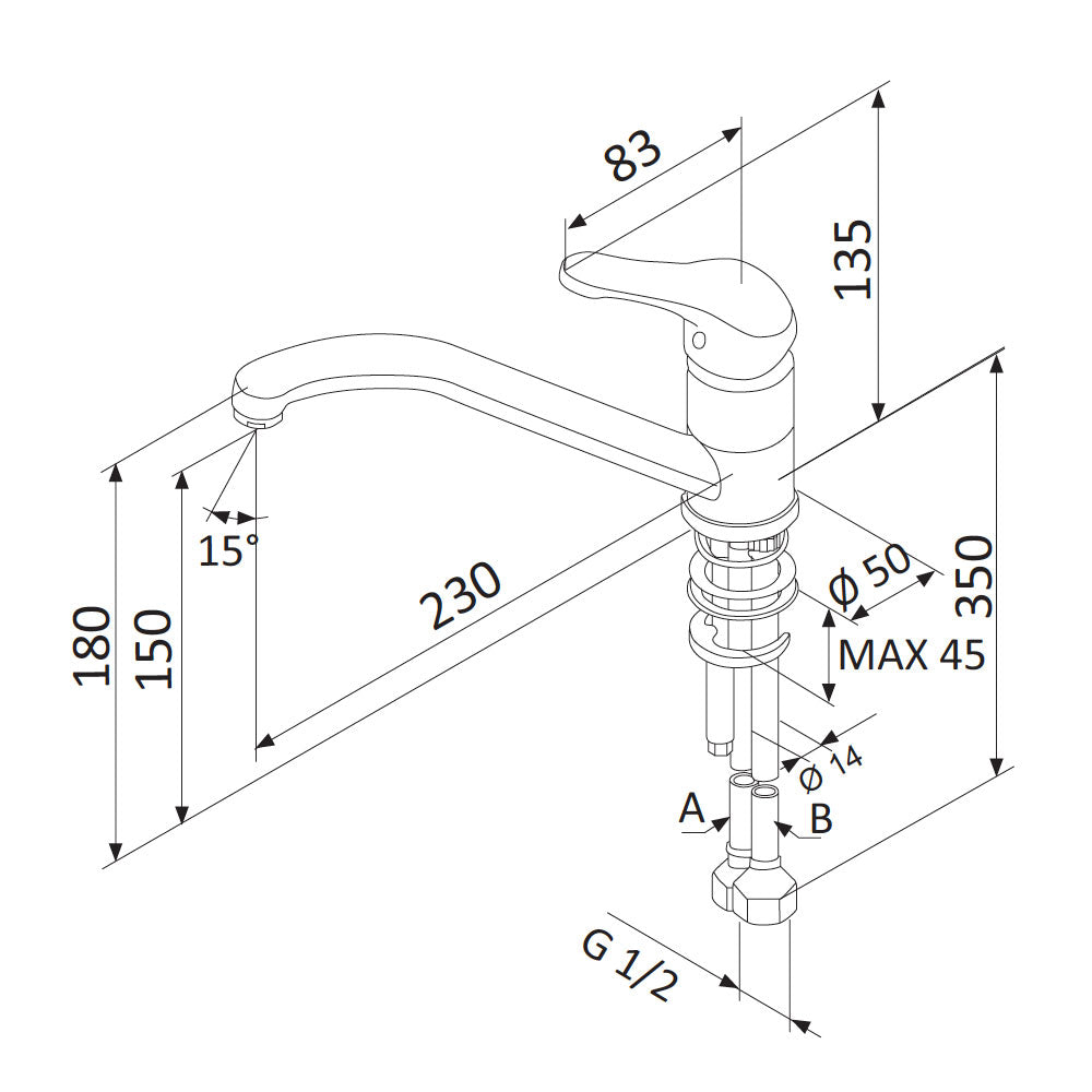 Mitigeur d'évier de cuisine avec bec pivotant Mariani Epic 508/E2 . Réglage de la cartouche à disque céramique ø 40 mm.