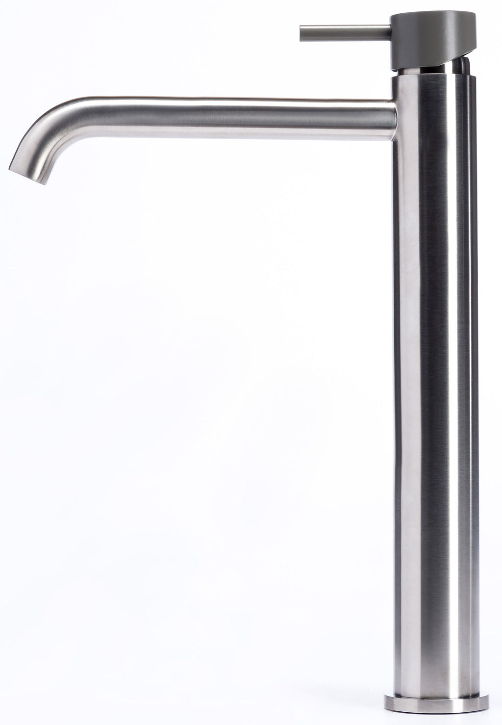 Mitigeur Monocommande Lavabo Haut en Acier Inoxydable Satiné Poignée Anthracite