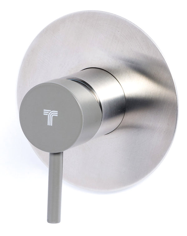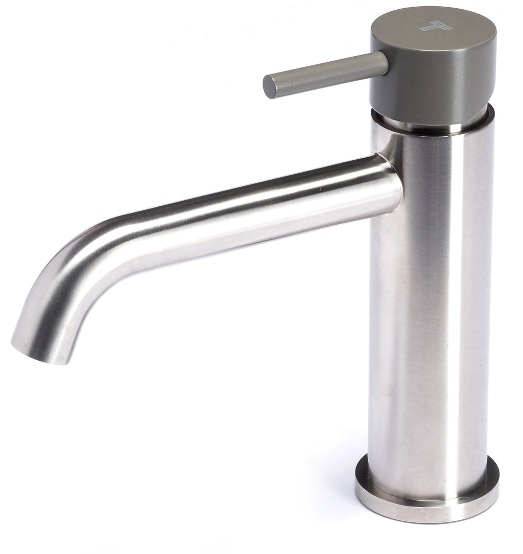 Mitigeur de lavabo monocommande sans vidage en acier inoxydable satiné poignée anthracite