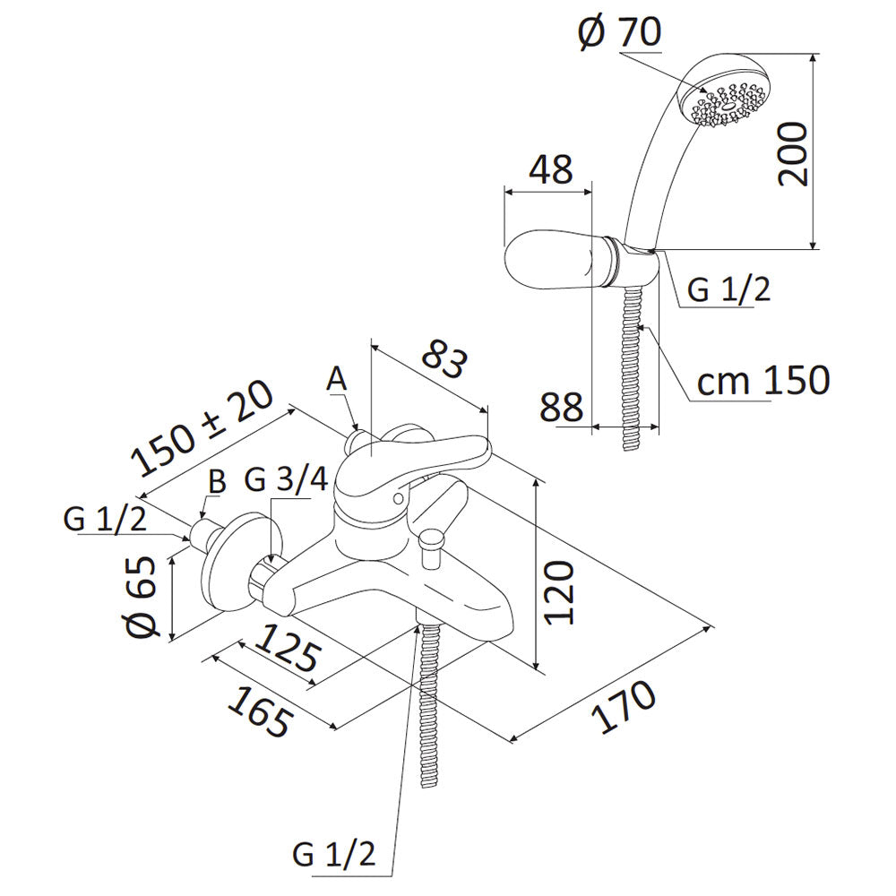 Mitigeur bain extérieur Mariani Epic 230/E2 . Avec douchette et accessoires, cartouche à disque céramique ø 40 mm.
