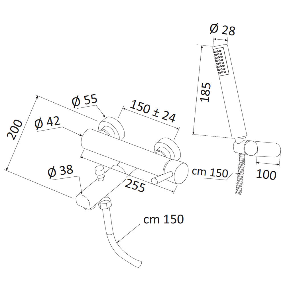 Mitigeur Bain Extérieur Mariani Artic 230/HR . Avec douchette et accessoires, cartouche à disque céramique ø 35 mm.