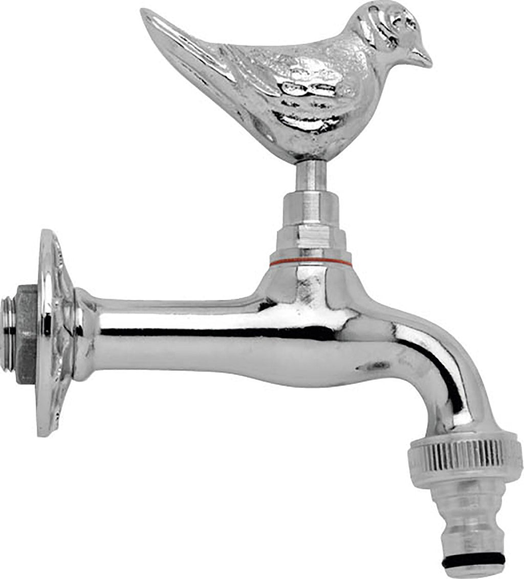 Robinet d'extérieur artistique adapté aux fontaines ou à monter au mur. Equipé d'un raccord rapide encore plus simple pour arroser votre jardin ou votre terrasse.