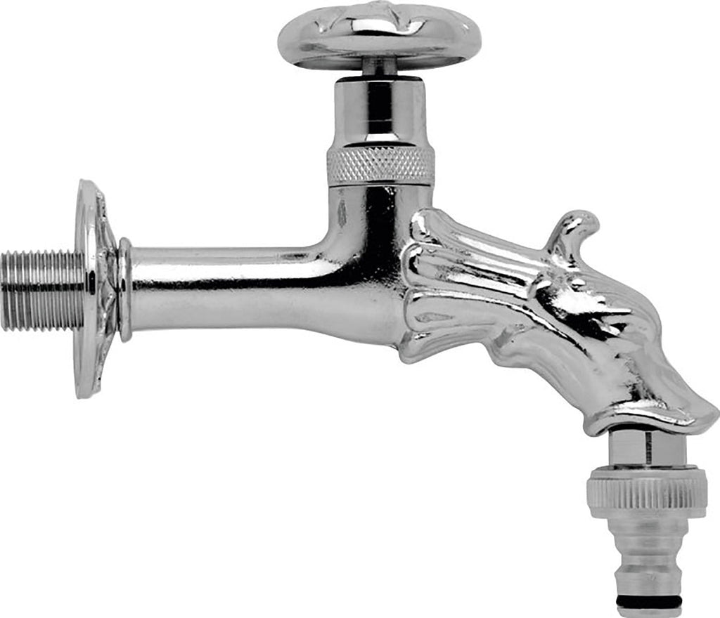 Robinet d'extérieur artistique adapté aux fontaines ou à monter au mur. Equipé d'un raccord rapide encore plus simple pour arroser votre jardin ou votre terrasse.