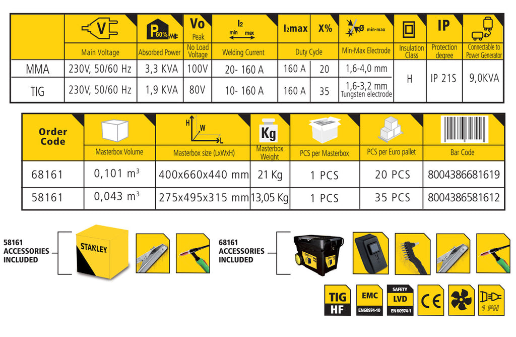 Poste à souder TIG Inverter Stanley TIG161 i Hf-Dc