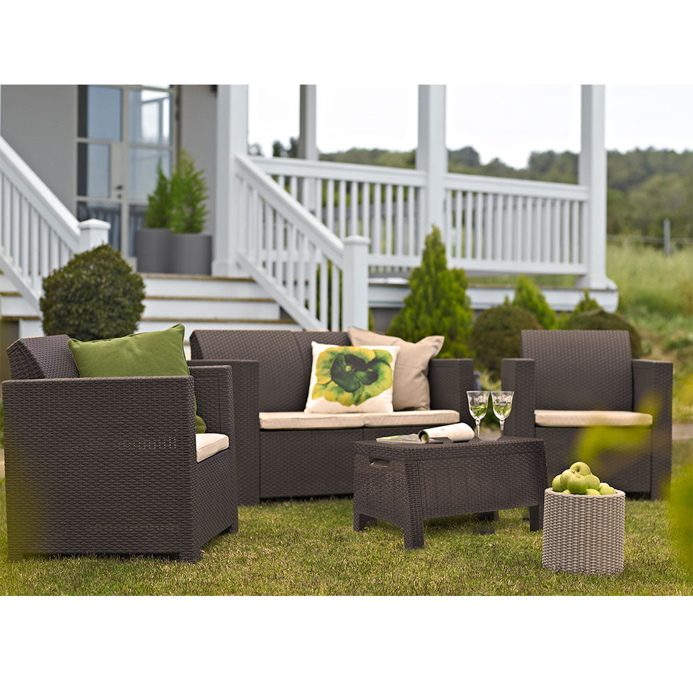 Ensemble de canapé de salon avec fauteuils et table basse en résine antichoc pour salon de jardin de couleur marron