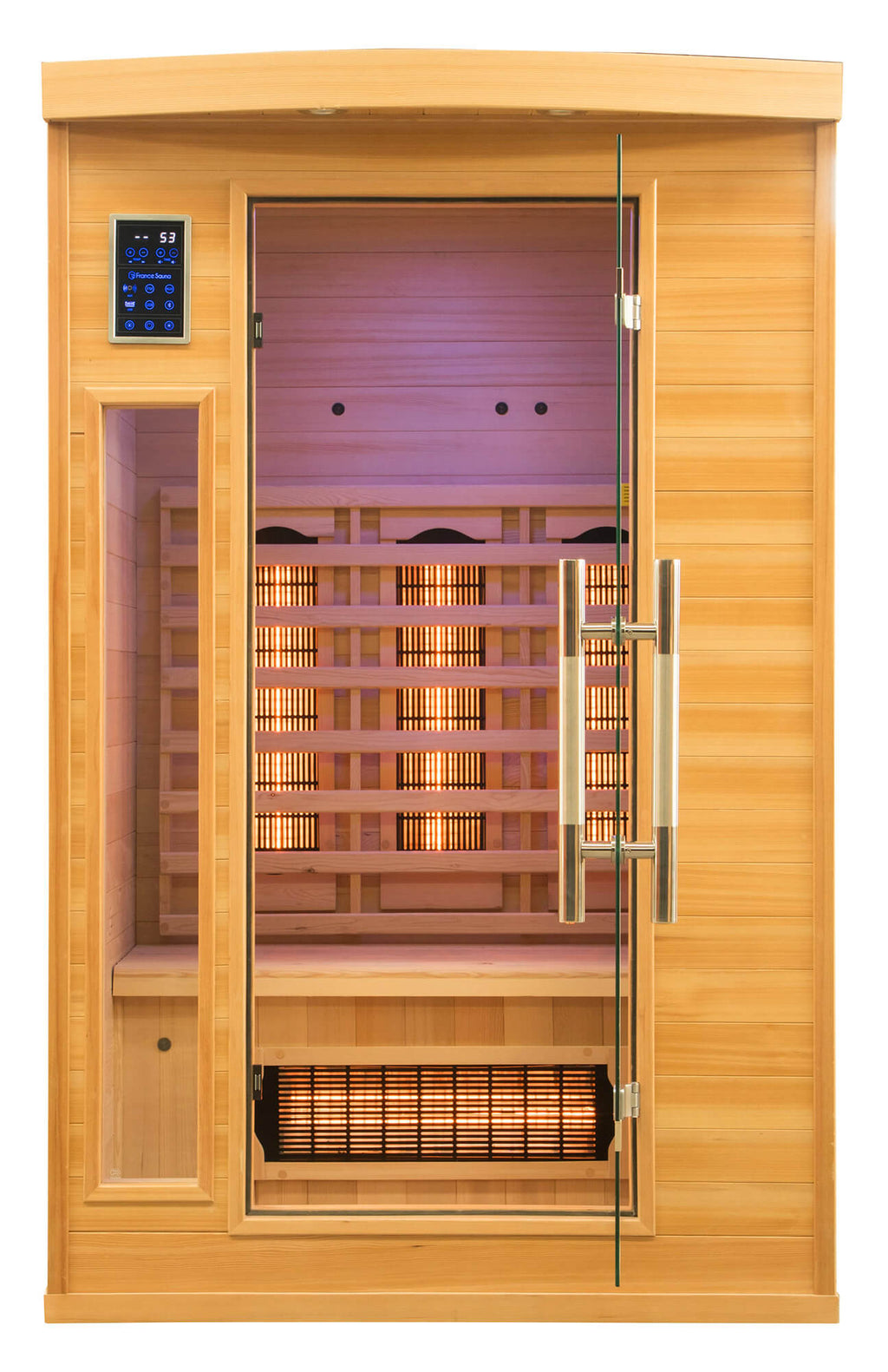 Chacun des émetteurs Quartz du sauna Apollon dispose d'un bouton ON/OFF. Profitez d'une cabine pour personnaliser votre moment de bien-être en allumant uniquement les panneaux nécessaires à votre détente. Un panneau de carbone au sol fournit une chaleur unifiée dans tout le sauna.
